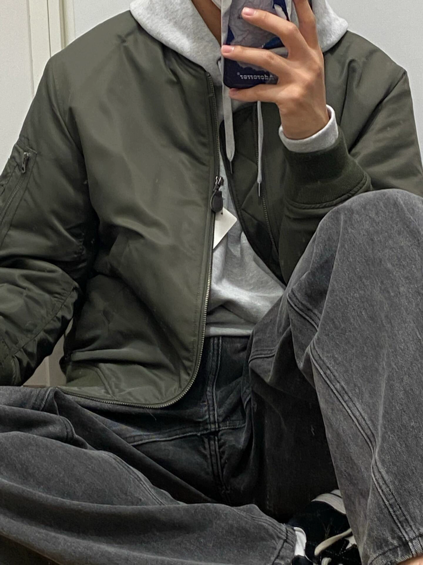 棒球领夹克外套男工装军绿色飞行员宽松痞帅风2025新款秋冬季百搭