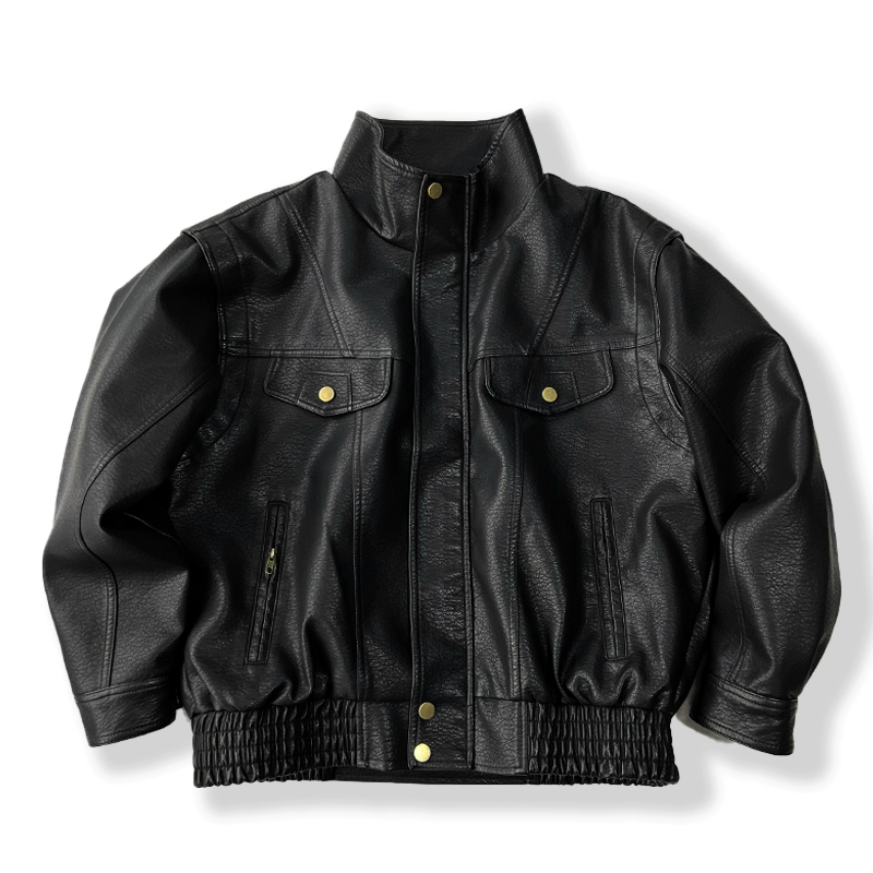 美式复古荔枝纹皮衣外套男春秋新款痞帅机车服短款工装立领夹克潮
