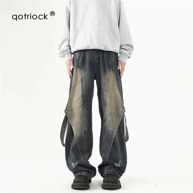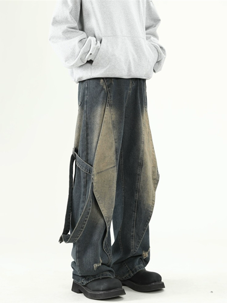 阔腿牛仔裤男潮牌2025小众复古痞帅阔腿工装裤子