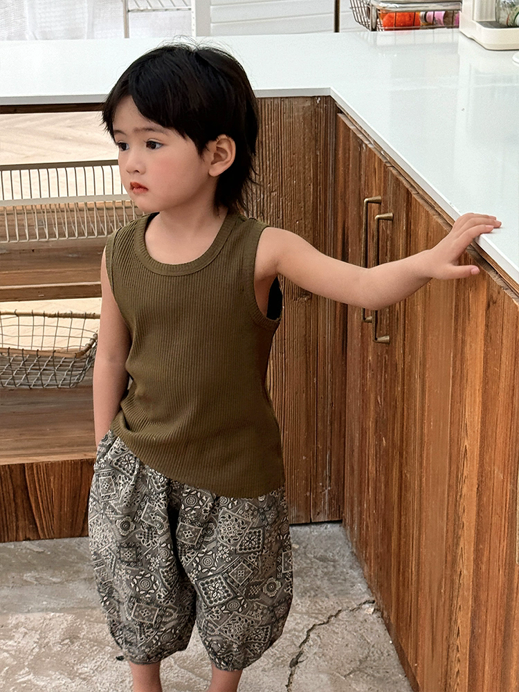 软薄好穿~森系儿童潮宝夏季背心T简约佰搭男童女童细坑条凉快无袖